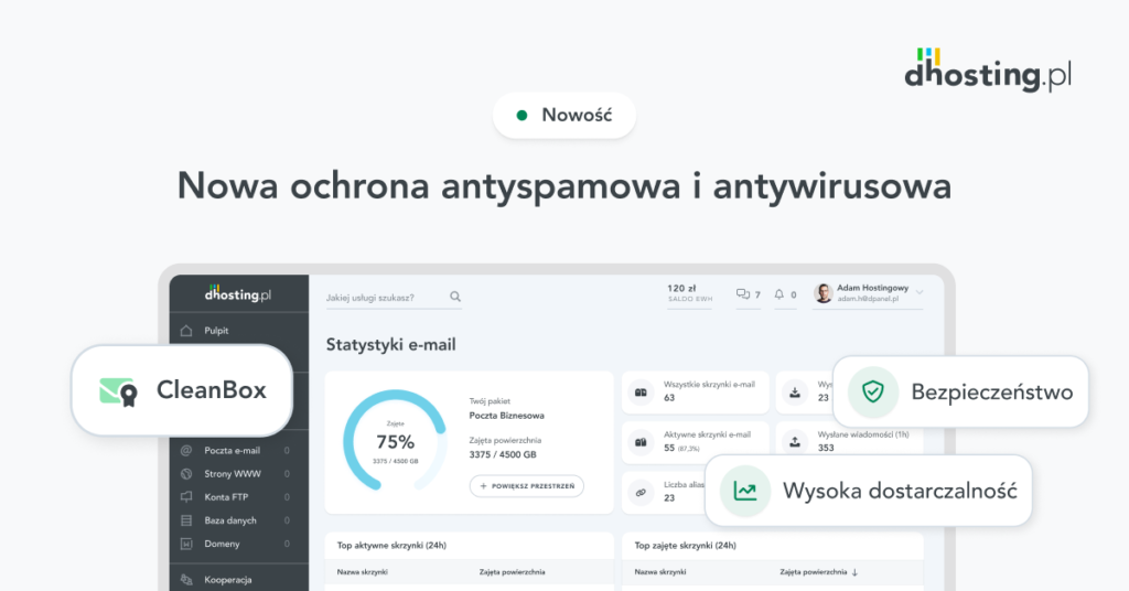 Szczegóły działania opisaliśmy tutaj: „Poznaj CleanBox – nowy system antyspamowy poczty w dhosting.pl”.