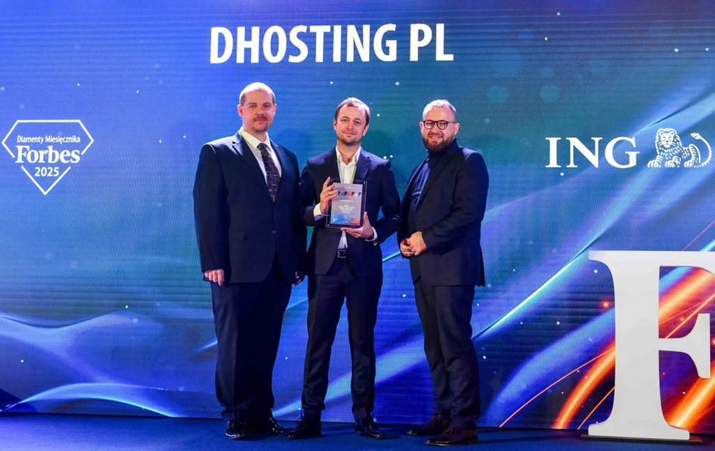 Jednym z najważniejszych wydarzeń 2025 roku było znalezienie się dhosting.pl w prestiżowym gronie laureatów Diamentów Forbesa. To wyróżnienie ma dla nas szczególne znaczenie, bo potwierdza, że rozwijamy się dynamicznie, ale jednocześnie w sposób stabilny i odpowiedzialny. Odbierając nagrodę, poczuliśmy, że praca całego zespołu i przyjęty kierunek rozwoju naprawdę przynoszą efekty.