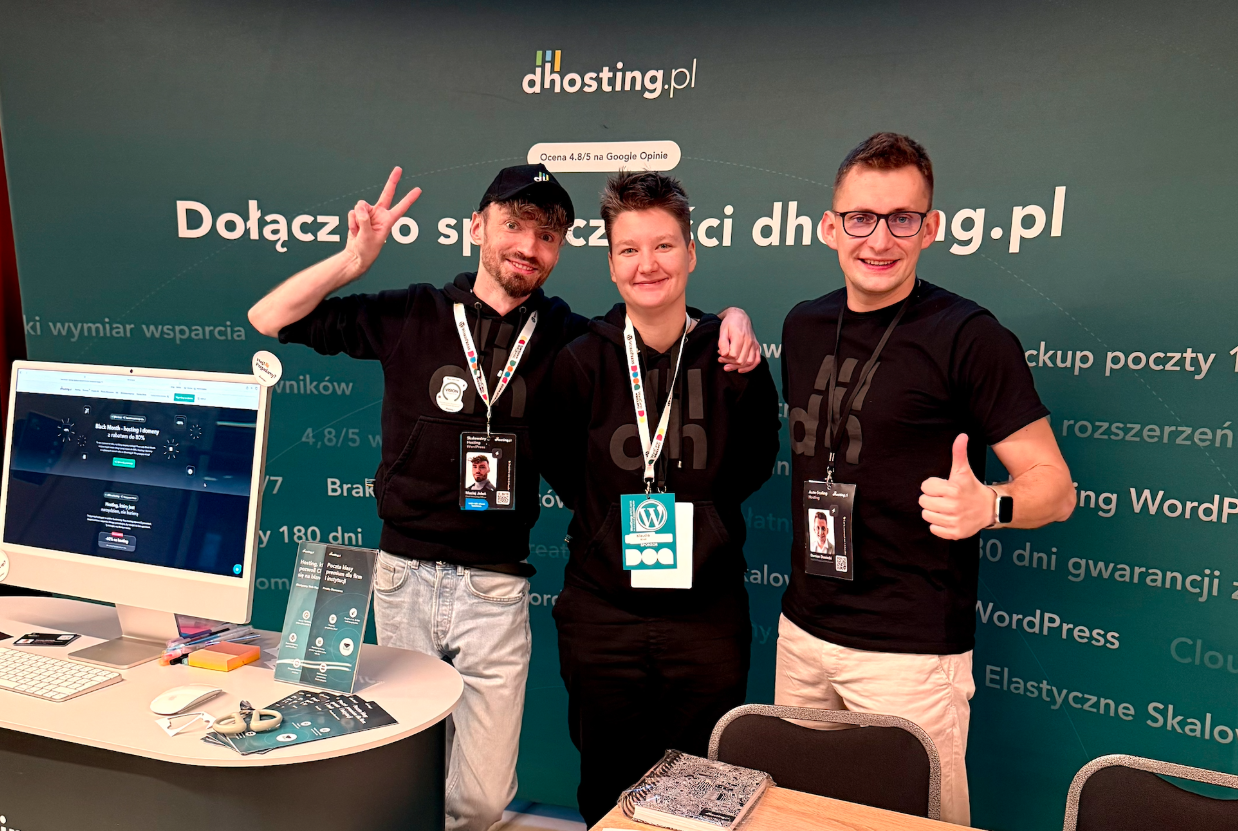 To, co szczególnie cenimy w WordCampach, to ich autentyczna, otwarta atmosfera. Ludzie przychodzą tu z pasji, chęci dzielenia się wiedzą i budowania lepszego internetu — i dokładnie tego samego szukamy my. Dlatego tak ważne jest dla nas, by nie być jedynie sponsorem, ale aktywnym uczestnikiem życia społeczności. Wspólne rozmowy, spontaniczne mini-warsztaty przy stoisku, a nawet zwykłe wymiany doświadczeń w kuluarach sprawiają, że wracamy z tych wydarzeń naładowani pozytywną energią i nowymi pomysłami, które później realnie wpływają na rozwój dhosting.pl.