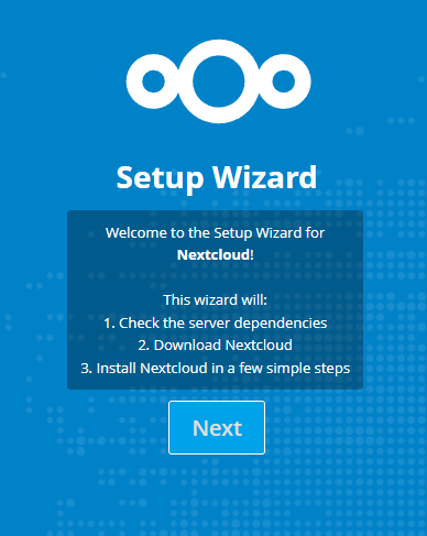 Aby uruchomić instalację przejdź na swoją stronę w przeglądarce z wywołaniem pliku instalacyjnego tj. np. http://twojadomena.pl/setup-nextcloud.php
